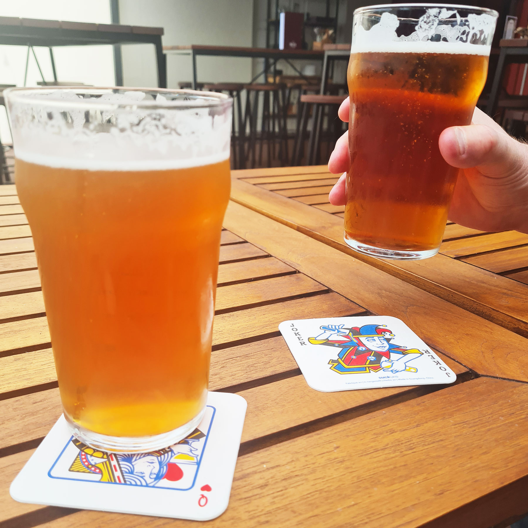Then there is the playing card drink mats! These are seriously the coolest drink mats on the market. A Complete set of 52 full-size beer mats + 2 Jokers. Absorbent, durable paper pulp, for soaking up sweating glasses – if you’re drinking cold beer in a warm place, these are essential. Remember your card, don’t lose your drink.