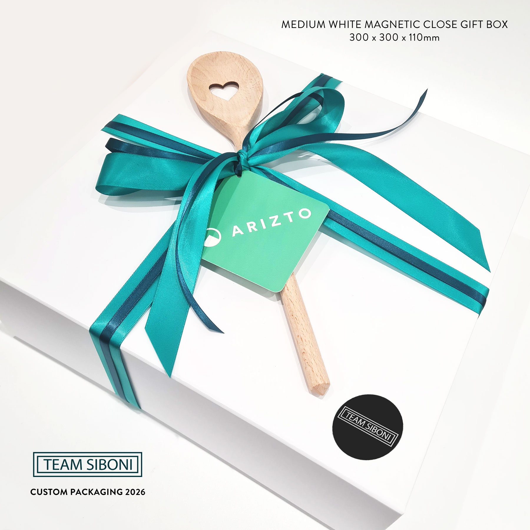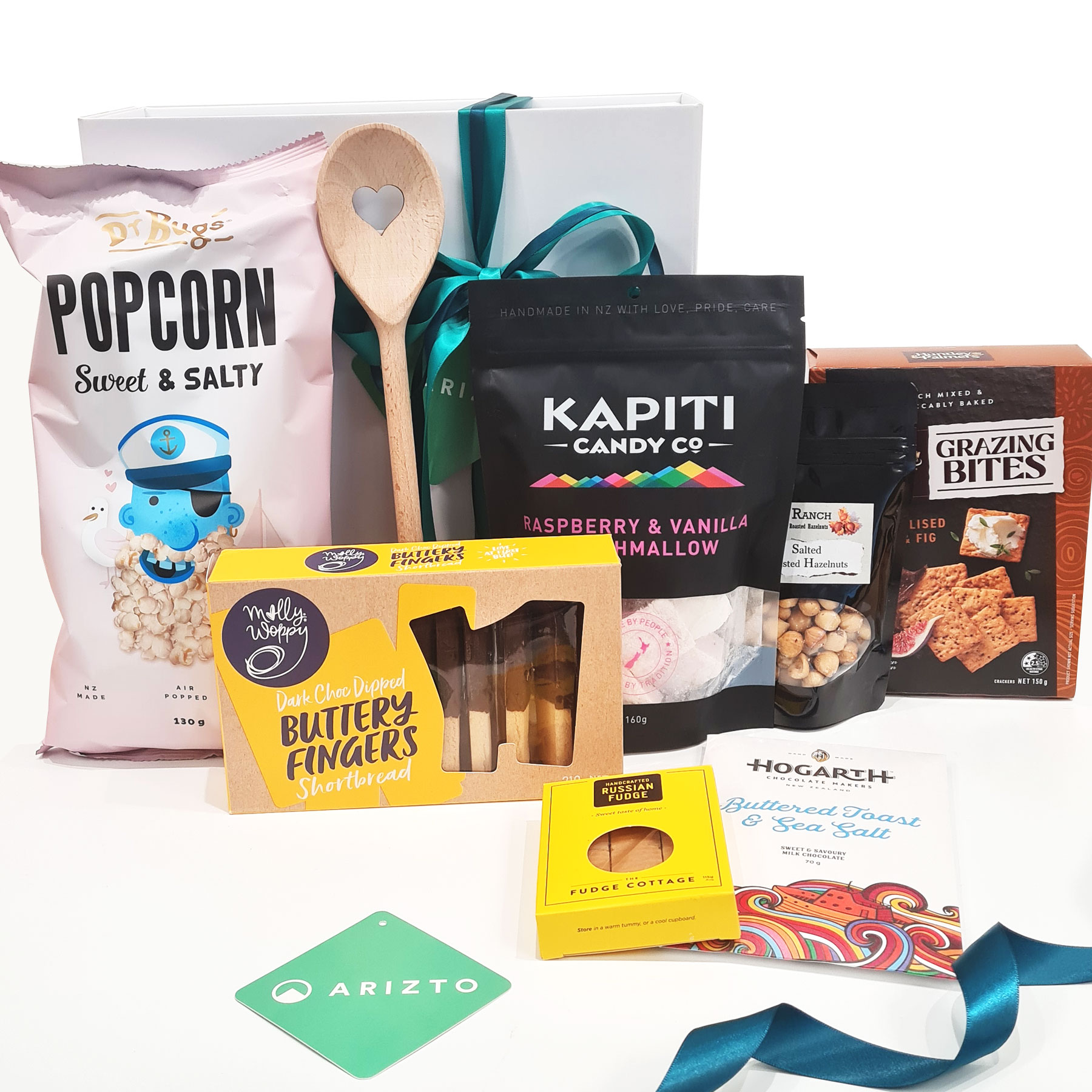 Mix of sweet & savoury nibbles and heart spoon on the exterior of the gift box. You can easily switch the heart spoon for another treat if you wish 🙂